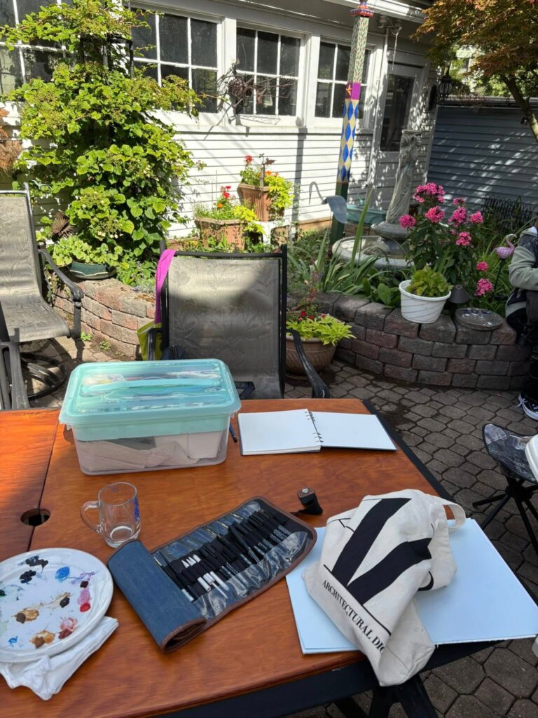 In my classes, I teach methods. You will learn in-depth about the tools and materials, and what you can get out of them to produce your own unique style. We currently meet weekly online, and monthly plein air in the garden.